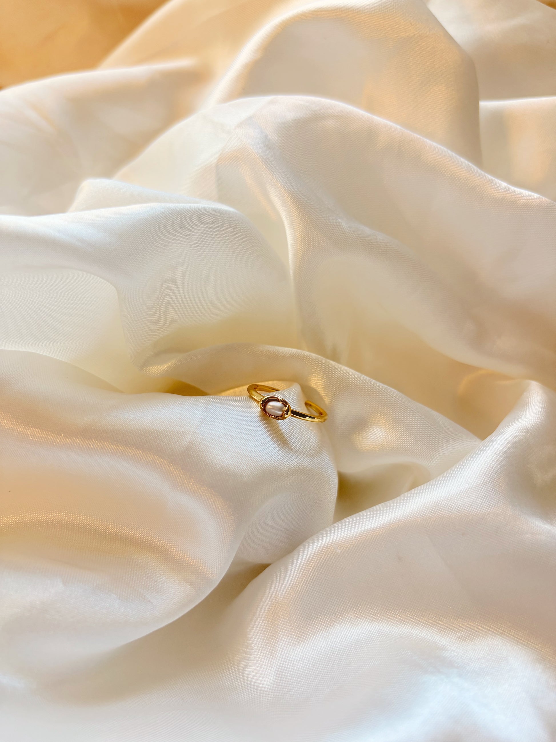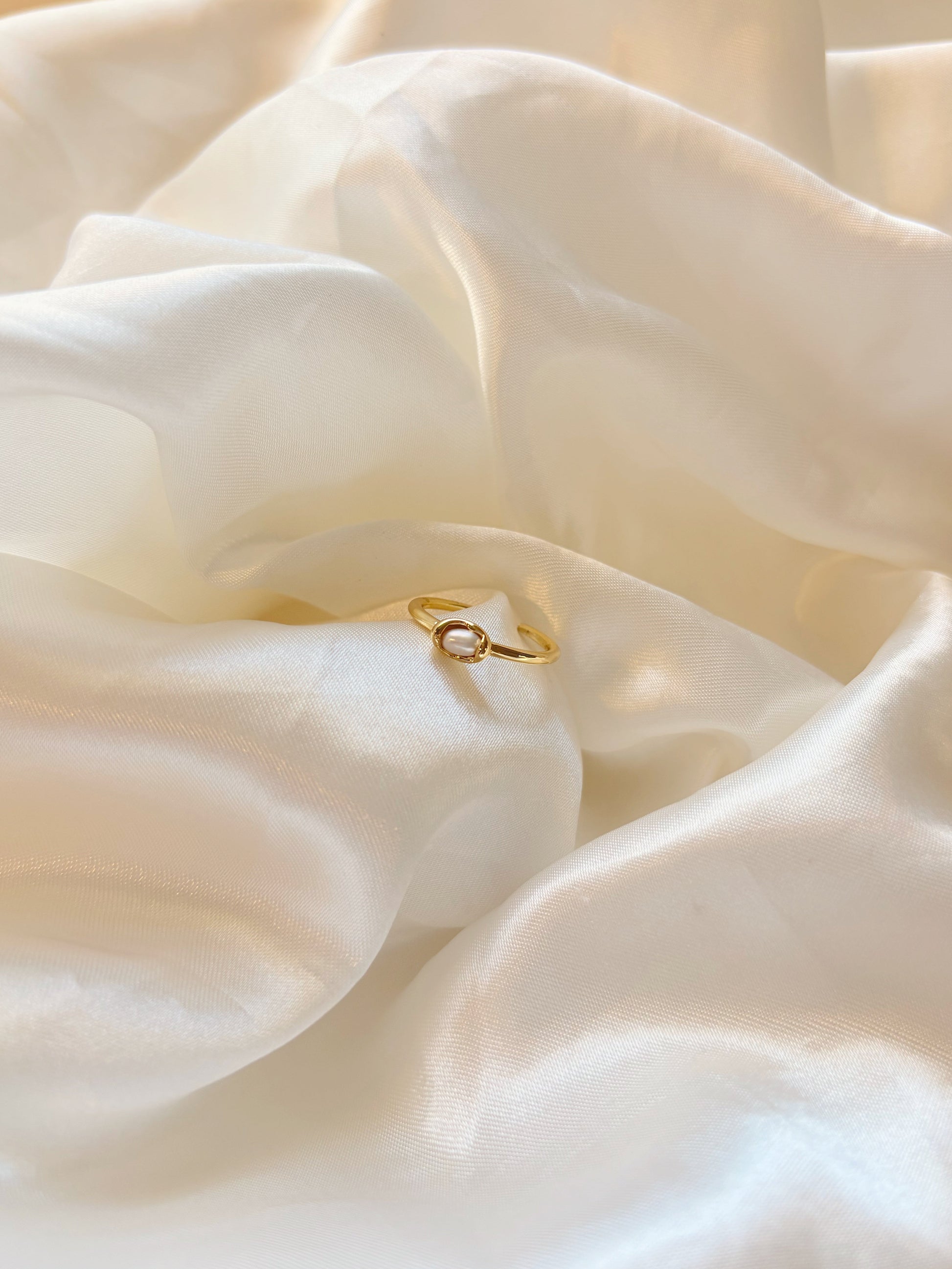 Anillo Chapado en Oro con Perla Central | Gold Plated Ring with Center Pearl